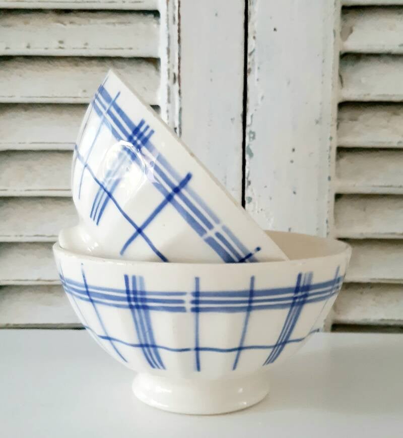 Je kunt ze natuurlijk ook leuk combineren met nieuwe spoelkommen, want die worden in Frankrijk nog steeds gemaakt. Voor de koffie/thee/warme chocomelk of cereal, want dat eten ze in Frankrijk tegenwoordig natuurlijk ook bij het ontbijt. (Ook daar staan er altijd een paar van in onze webshop)
