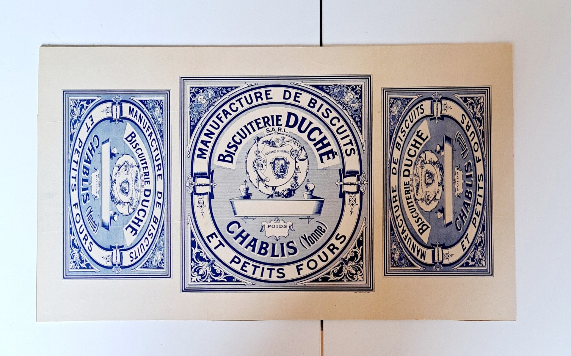 Oude franse verpakkingsetiket BISCUITERIE DUCHÉ