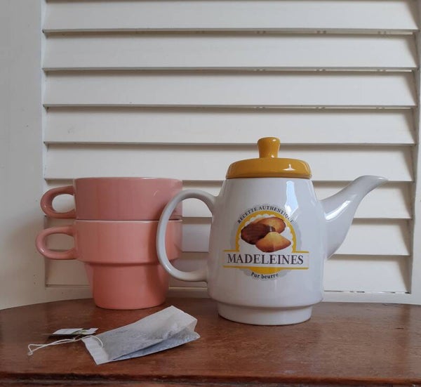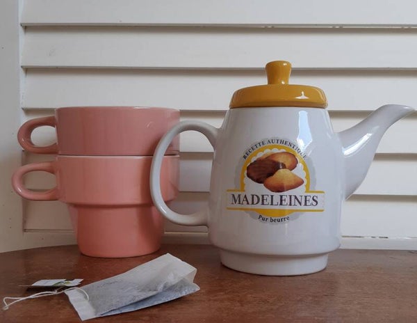 Theepotje met het bekende Franse cakeje, de madeleine.