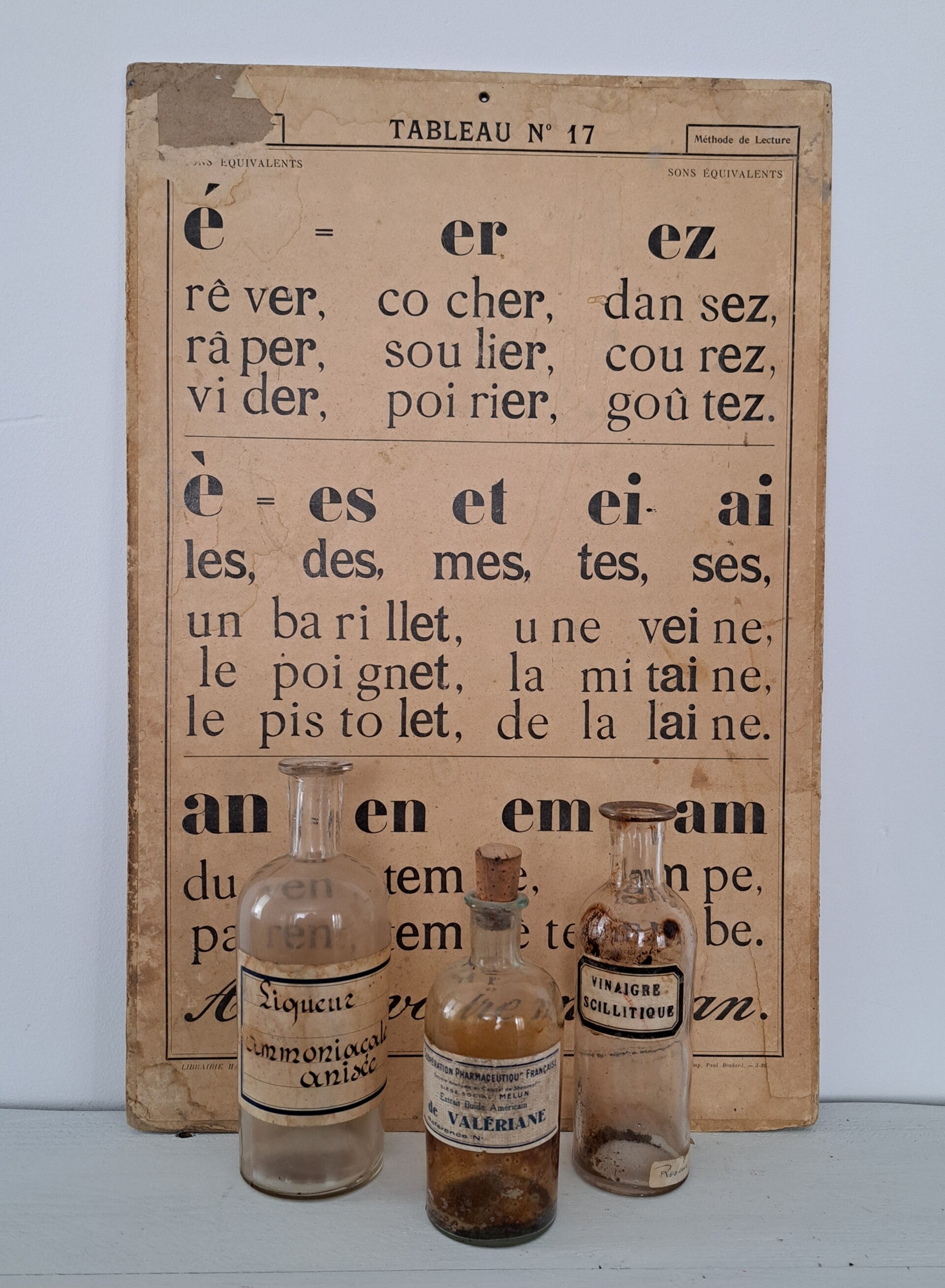 Oude franse schoolplaat TABLEAU N 17/18 Methode de Lecture