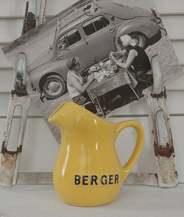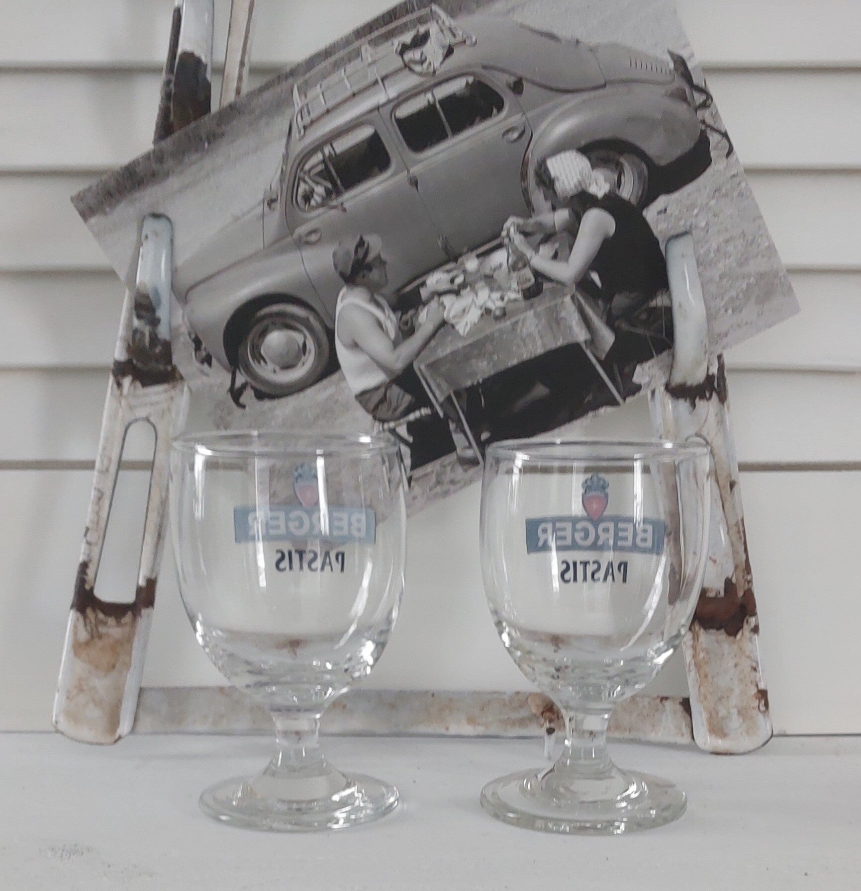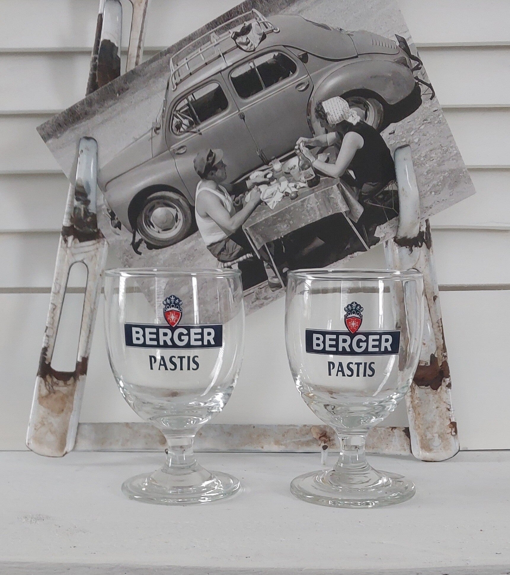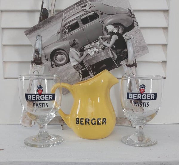 Bijzondere set 2 BERGER PASTIS glazen met aardewerk BERGER kan