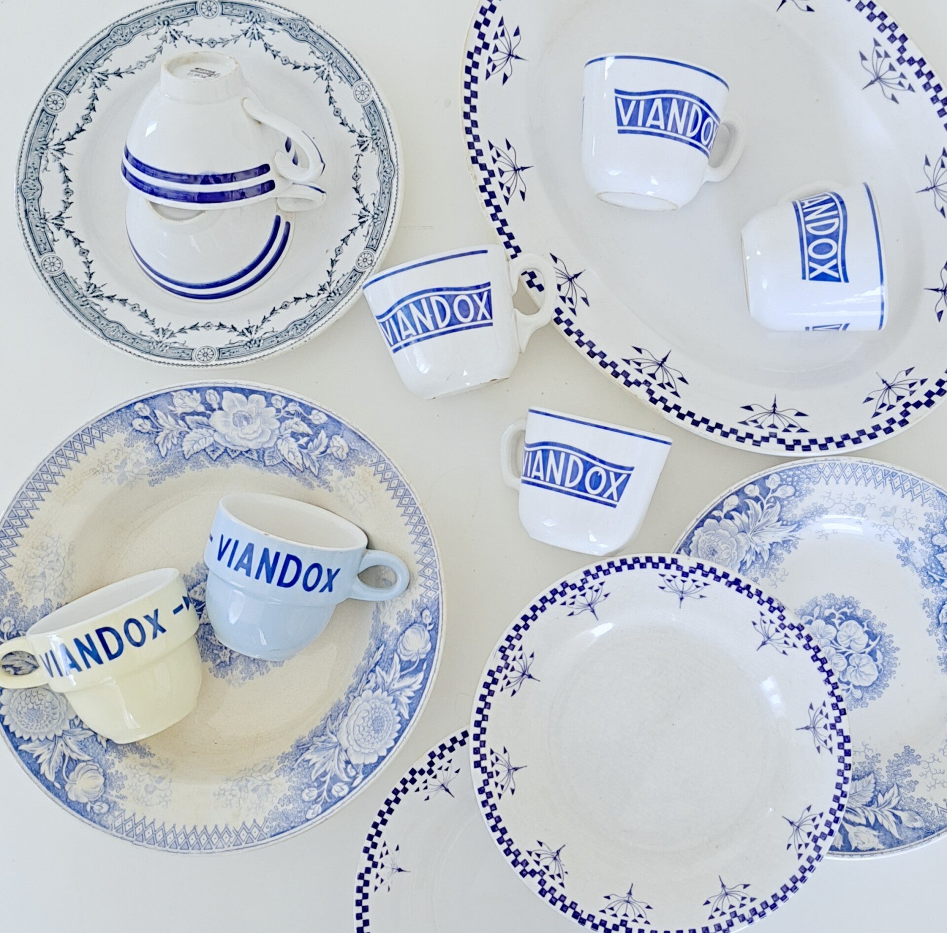 Tip zet een paar oude borden in het midden van de gedekte tafel, bijvoorbeeld gecombineerd met witte borden.