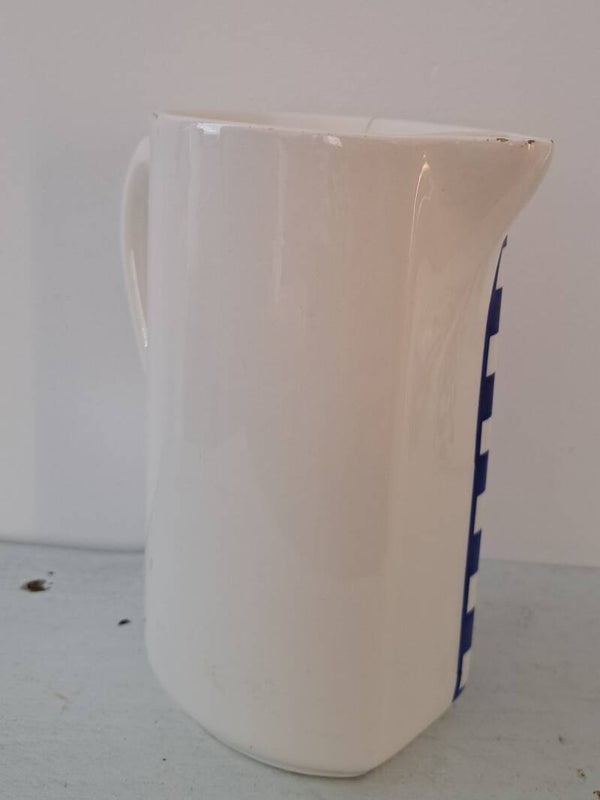 Leuk met ander blauw/wit geblokt servies te combineren, ook leuk met een bloemetje (heeft een scheurtjes aan voor en onderkant)