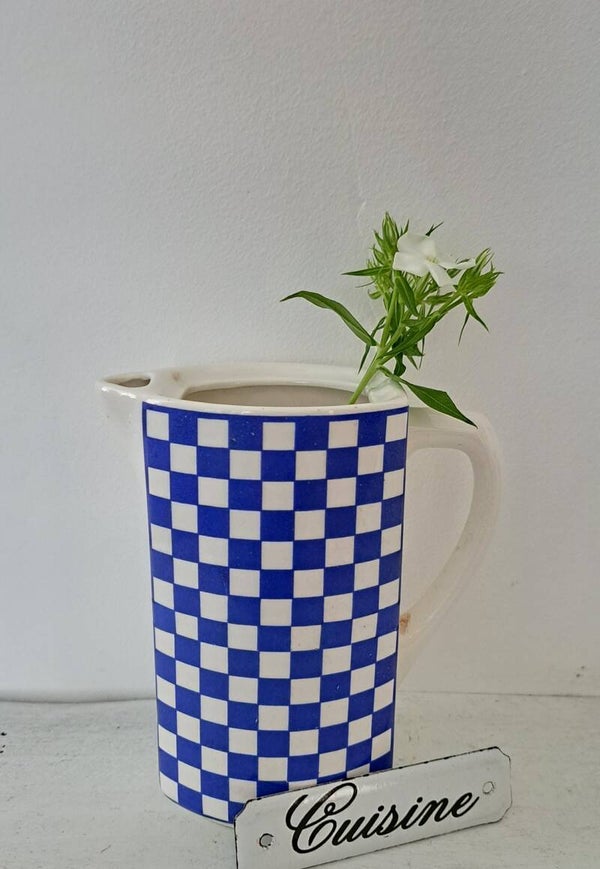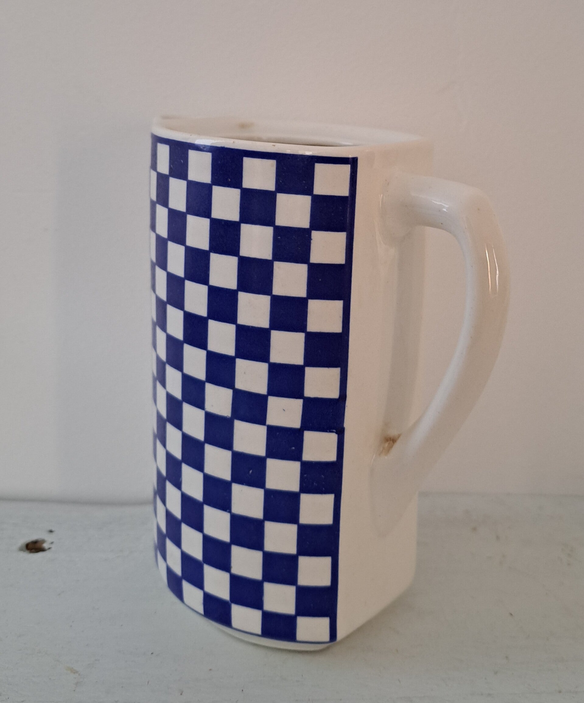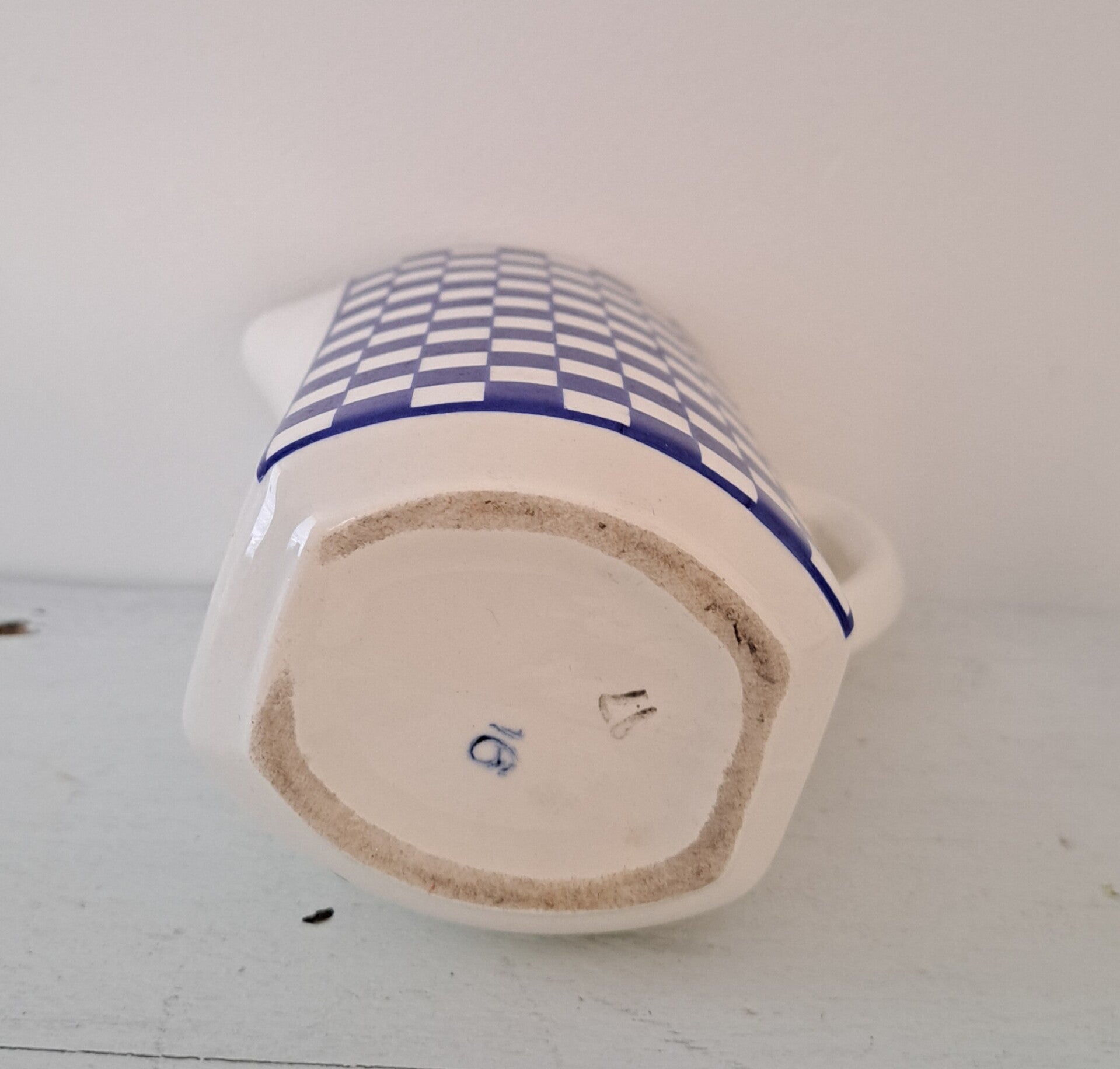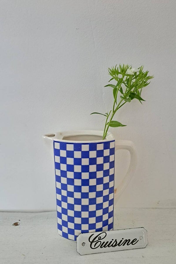 Leuk om met ander blauw/wit geblokt servies te combineren, ook leuk met een bloemetje.