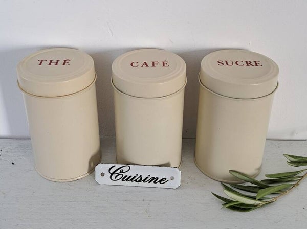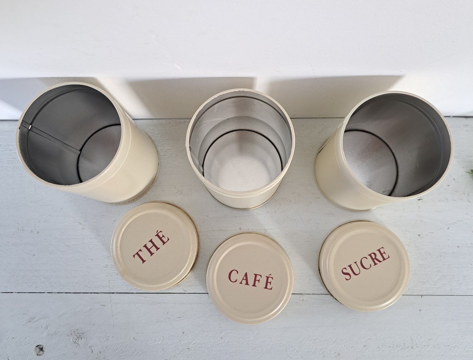 THÉ CAFÉ SUCRE leuke set Franse blikjes lichte zandkleur