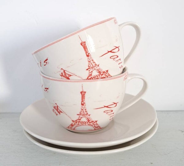 Afmetingen kop hoogte 6.5 cm diameter boven 10.5 cm schotel diameter 16 cm