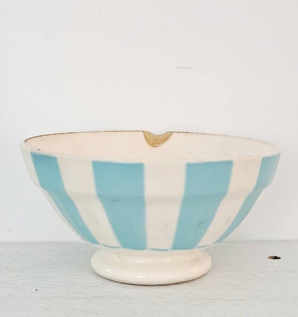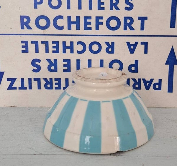 Franse spoelkom/café au lait bowl wit/blauw brede streep (12)