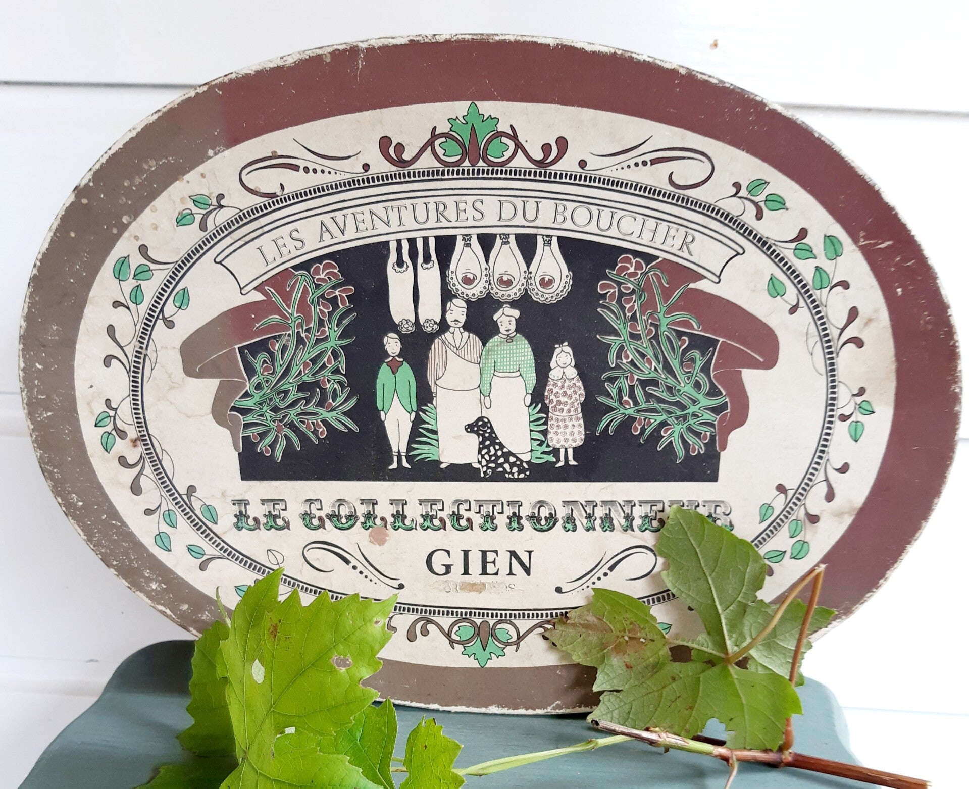 Leuke Franse doos met mooie decoratie en Franse tekst LES AVENTURES DU BOUCHER