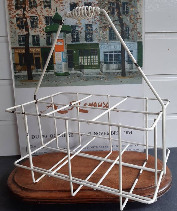 Mooi Frans flessenrekje, wit geplastificeerd, voor 6 flessen