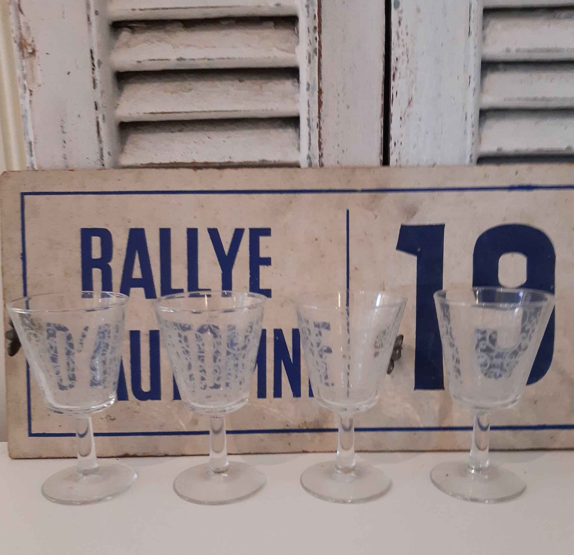 4 Franse likeurglaasjes met leuk wit motief