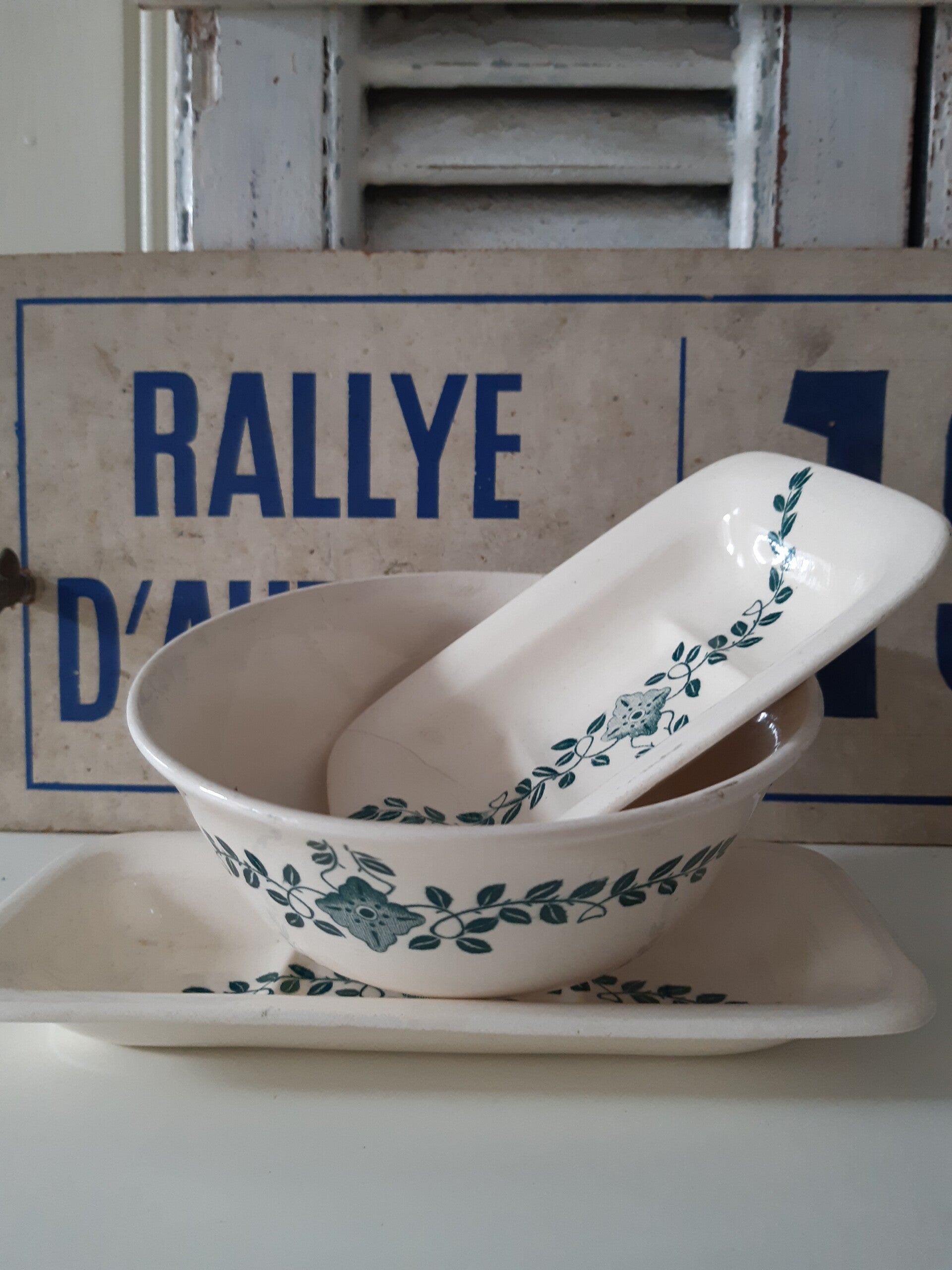 (Het zeepbakje heeft een scheurtje, zie foto 7, het kommetje een chipje bovenaan eraf zie laatste foto)