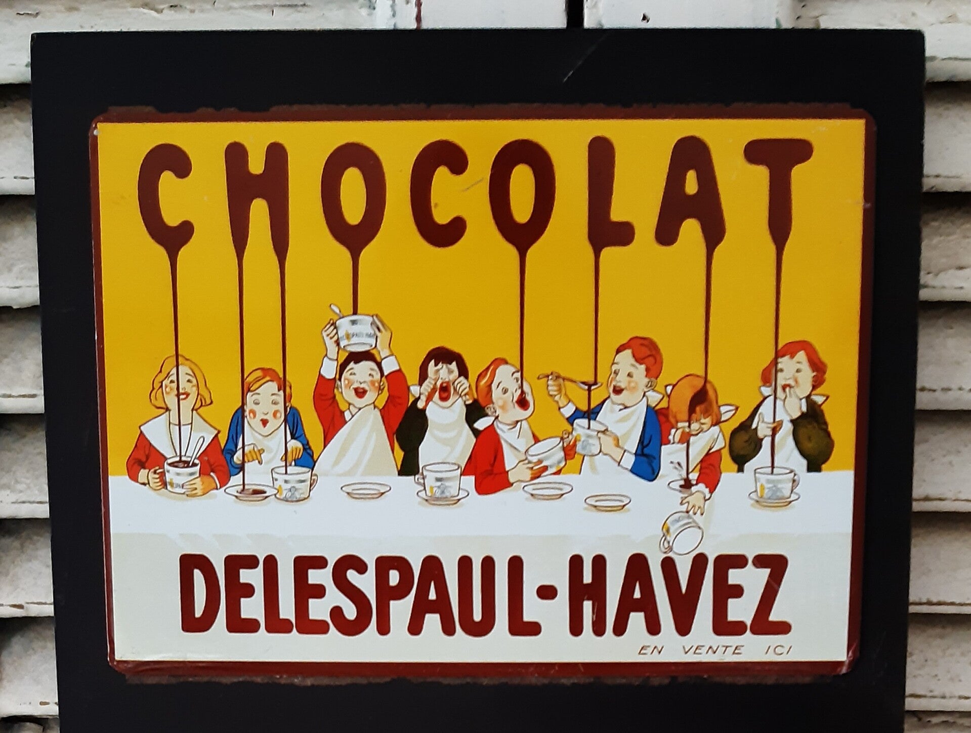 Met leuke afbeelding CHOCOLAT EN VENTE ICI