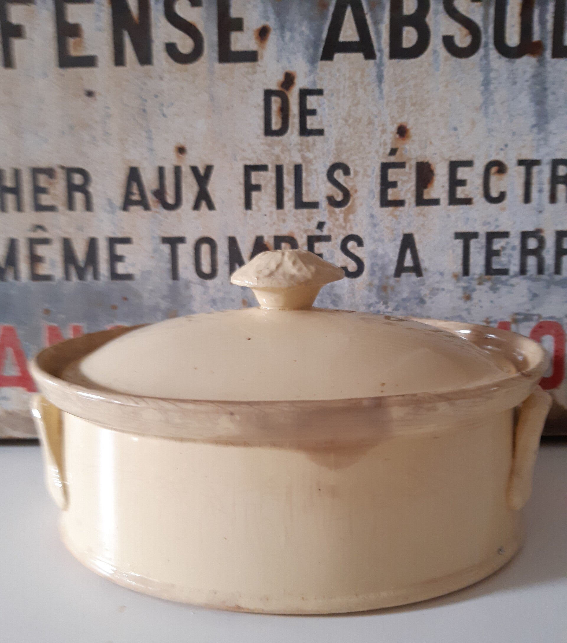 Mooie Franse brocante paté/oven schaaltje met deksel