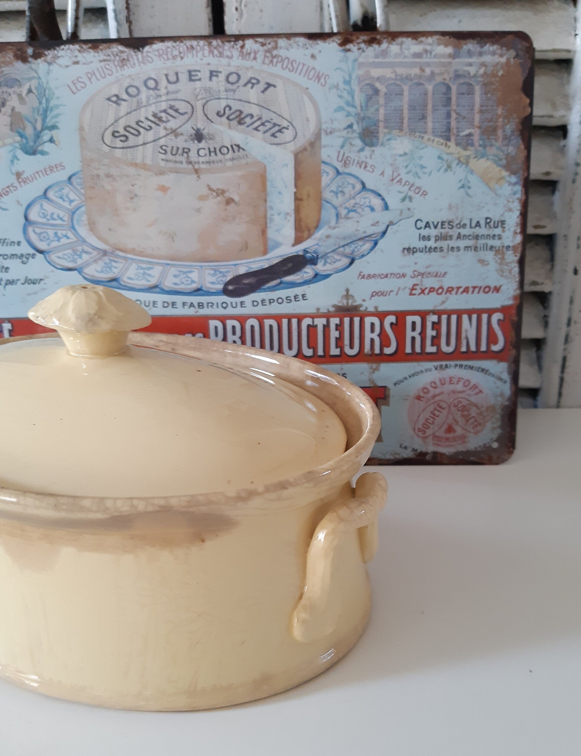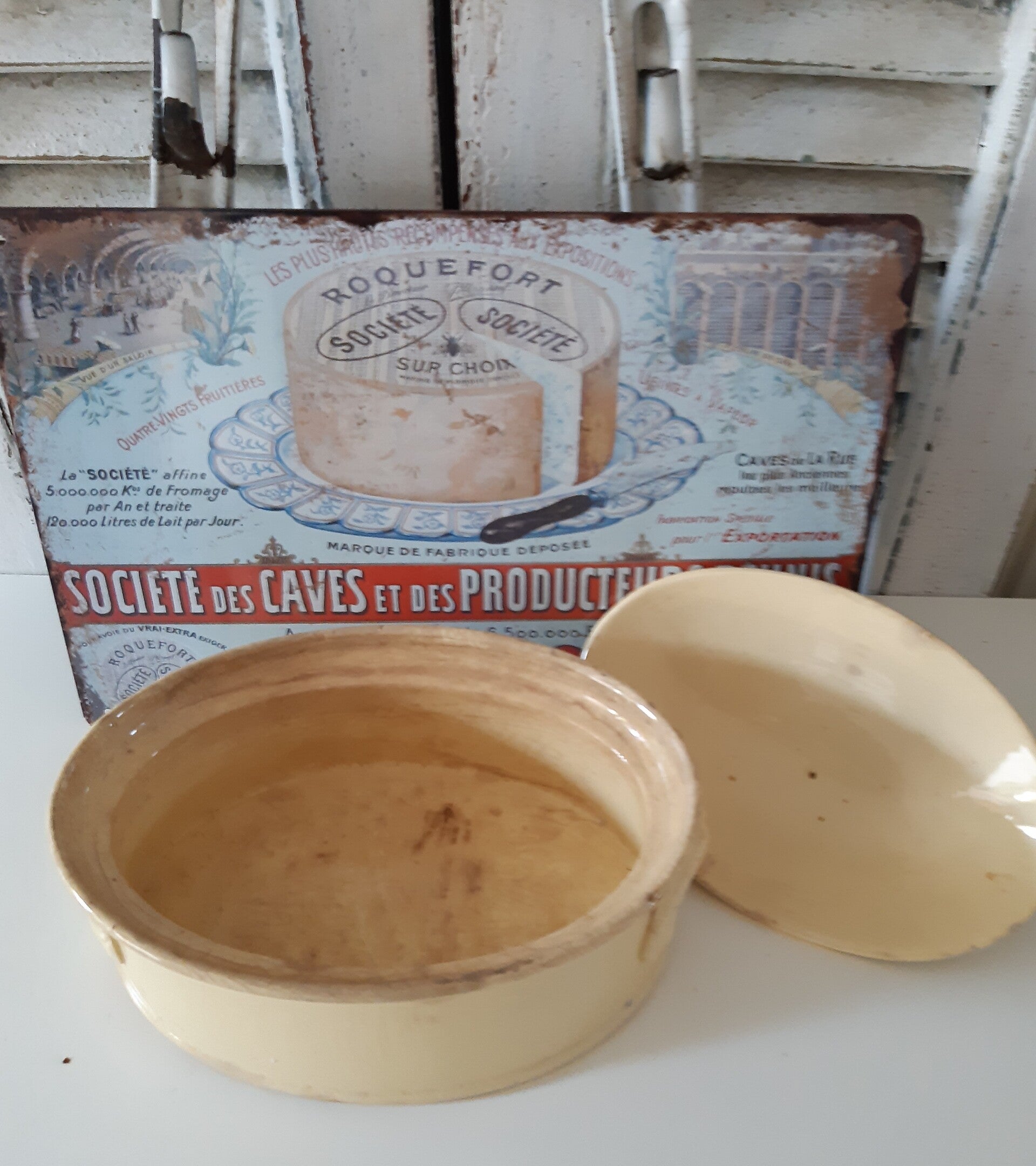 Franse Brocante paté/oven schaaltje met deksel mooi beboterd