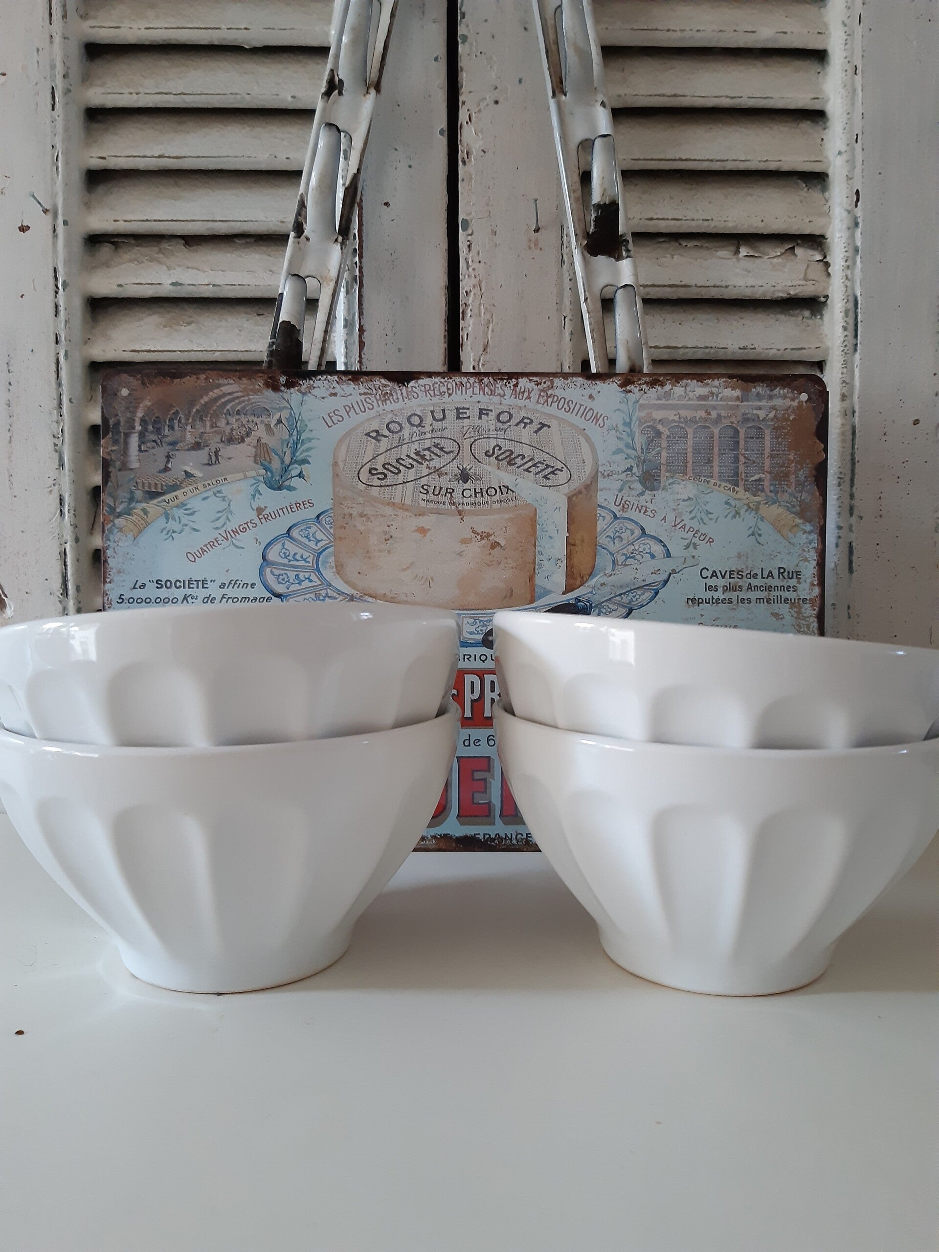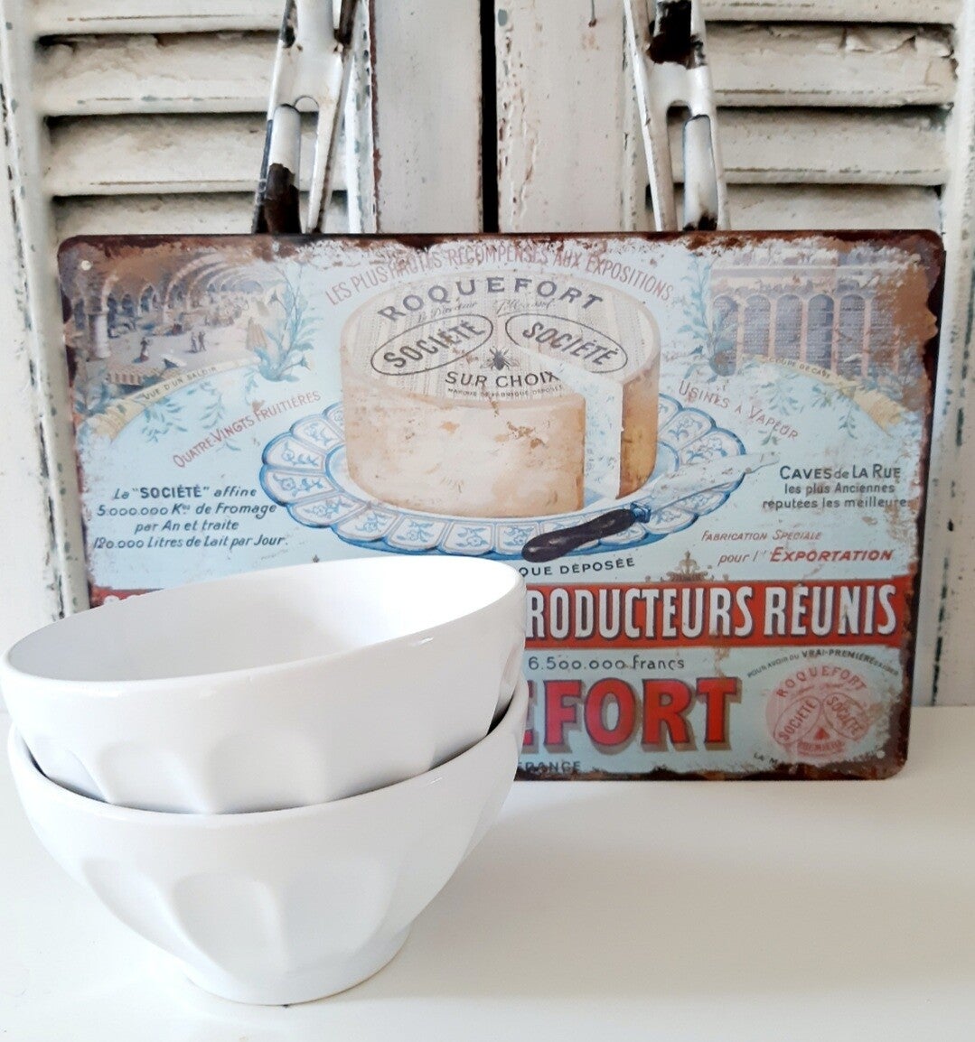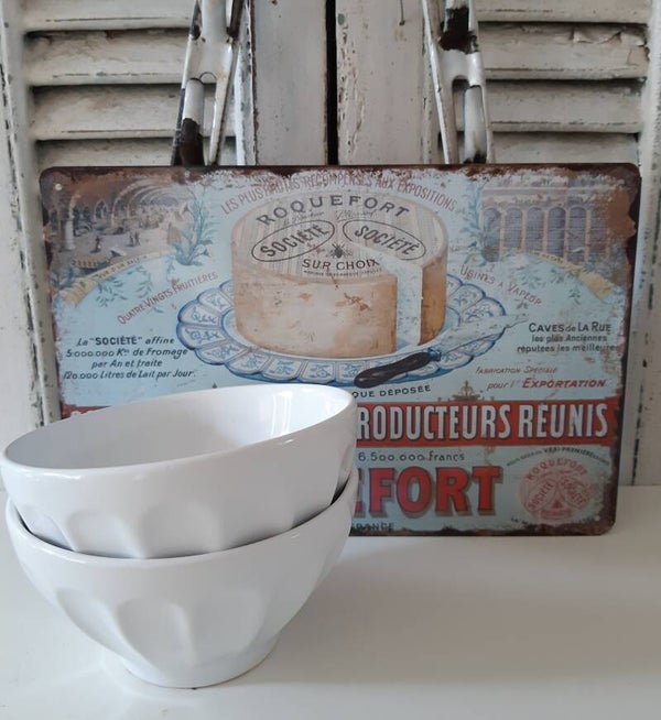 Set van 2 Franse nieuwe witte aardewerk schaaltjes/spoelkommen